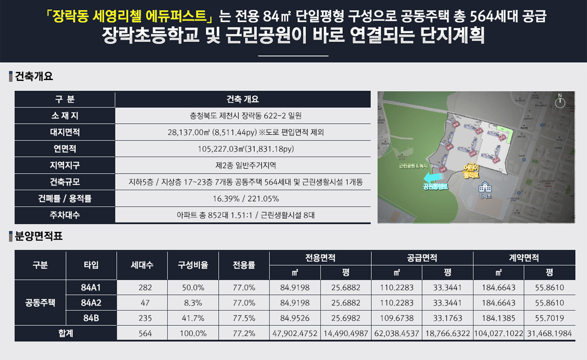 사업명. 장락동 에듀퍼스트 세영리첼 현장위치. 충청북도 제천시 장락동 622-2 일원